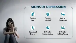 - Emotional symptoms : low mood, sadness, irritability, hopelessness, loneliness, feeling of worthlessness, anhedonia